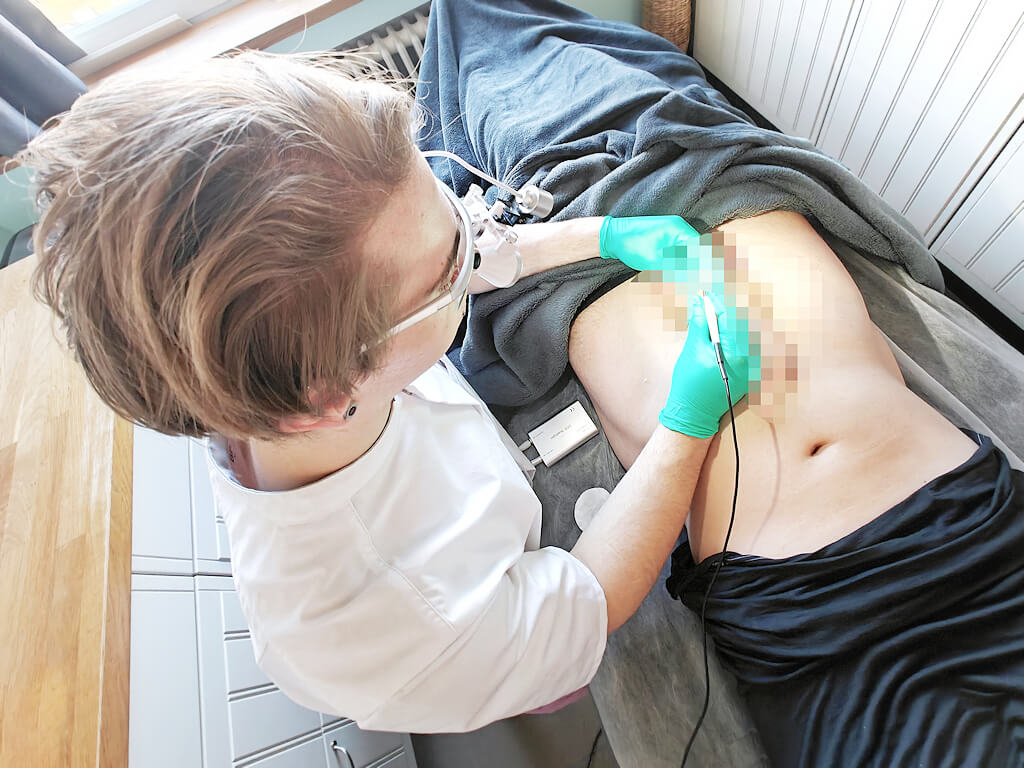 Laser zal niet voor 100% werken, dus hiervoor zullen we, net als voor je genitale zone, een deel van de haren (voornamelijk de dunne, witte of donsharen) verwijderen met elektrische naald epilatie aan het einde van je sessies. Dit is vooral belangrijk wanneer je een vaginoplastie in België laat doen, waar elektrolyse vaak legaal vereist is. Indien je naar het buitenland gaat (vb Thailand) is dit minder belangrijk omdat artsen daar andere delen van de penishuid gebruiken en meer tijd besteden aan het cauteriseren van haren tijdens de operatie.
