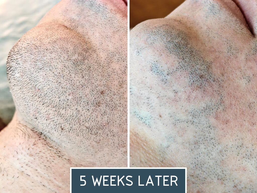 Ik schrijf op deze pagina's dat ik alle zones bijna pijnloos kan laseren en dat is waar, door de intensiteit zorgvuldig op te bouwen naarmate de haardichtheid afneemt. Ik krijg vaak echter het verzoek van mijn MTF-klanten om zo krachtig mogelijk te werken en het totaal aantal sessies te minimaliseren. Ik wil hier probleemloos aan tegemoet komen, omdat ik als geen ander de limieten van mijn machine ken (ik heb er tenslotte zelf mijn eigen baard mee verwijderd), maar begrijp goed dat sessies met deze aanpak, zelfs bij maximale koeling, nog erg pijnlijk kunnen zijn.
