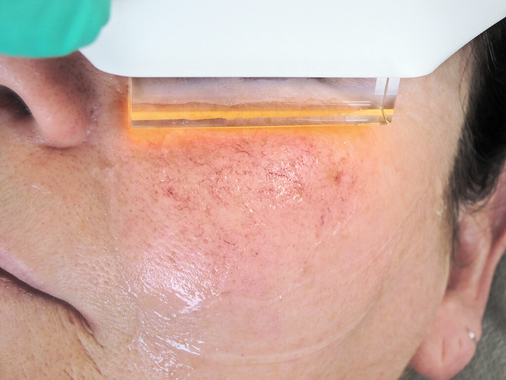 Deze vlekjes, Couperose genoemd, verdwijnen namelijk niet vanzelf, maar zullen langzaam aan erger worden indien onbehandeld. In het beginstadium kan bestraling met rood en infrarood LED licht volstaan om collageen productie in de celwanden te stimuleren en de vaatjes opnieuw sterker te maken. Verder kan ik selectieve photothermolyse via IPL toepassen om de verslapte haarvaten dicht te schroeien, waarna dezen door het lichaam afgevoerd zullen worden, terwijl we de gezonde haarvaten ongemoeid laten.